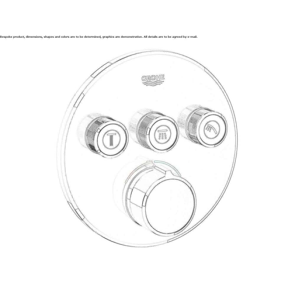 Smartcontrol to 3-drożna bateria jednouchwytowa. Dane techniczne: zewnętrzna część do zabudowy GROHE Rapido SmartBox art. 35 600/35 604 System instalacyjny GROHE FastFixation sterowanie przez użytkownika za pomocą przycisku SmartControl: uruchamianie/zatrzymywanie przepływu wody i sterowanie z trybu ograniczonego EcoJoy do pełnego przepływu wymienne symbole użytkownika wkład do regulacji temperatury możliwość jednoczesnego załączenia wyjść bez zestawu do montażu wstępnego wydajność: wyjście A = 22 l/min wyjście B = 26 l/min wylot C = 22 l/min wydajność A + B = 31 l/min wylot A + B + C = 34 l/min GROHE Bateria SmartControl to idealny sposób na łatwe sterowanie prysznicem dzięki intuicyjnej obsłudze, a jej czysty styl wzbogaci istniejący projekt. Innowacyjna technologia SmartControl umożliwia regulację przepływu wody poprzez naciśnięcie i obrócenie przycisku. Skalowane przyciski GROHE EasyLogic z wymiennymi symbolami są łatwe i intuicyjne w obsłudze. A dzięki systemowi GROHE QuickFix instalacja jest prosta i natychmiastowa. Smukły kształt ułatwia czyszczenie, a trwałe wykończenie GROHE StarLight (chrom) sprawia, że połysk nie ulega zmianie wraz z upływem czasu. Dzięki smukłej i kwadratowej konstrukcji, idealnej do łazienek o minimalistycznym i liniowym wyglądzie, ta bateria nadaje ostateczny akcent, którego brakowało Twojej łazience. Produkt do montażu w połączeniu z GROHE Rapido SmartBox (35600000).