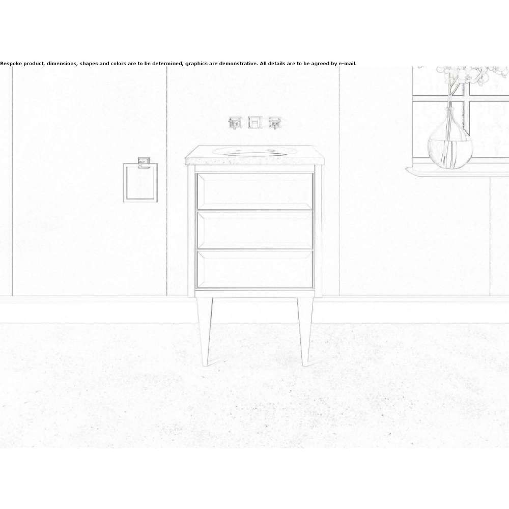 Him to szafka pod umywalkę, która czerpie inspirację z proporcji i kształtów wielkiego amerykańskiego okresu designu Bauhaus i ożywia je w zaskakująco kompaktowych wymiarach, idealnych do małych, urokliwych wnętrz. Zasadnicze linie podstawy obejmują otwierane drzwi, pokryte diamentowym lustrem podzielonym na trzy części i podtrzymujące wyrafinowany granitowy blat. Wszystkie wykończenia można dostosować na życzenie.