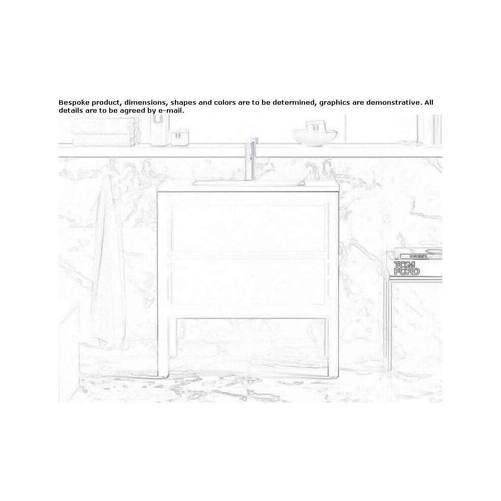 Wewnętrzne szuflady są wykończone w tym samym dębie co część zewnętrzna, a wbudowana umywalka wykonana jest z białego matowego kamienia kompozytowego. Umywalka dostarczana jest bez otworu na baterię, dzięki czemu można zastosować baterię umywalkową montowaną na ścianie lub na blacie.