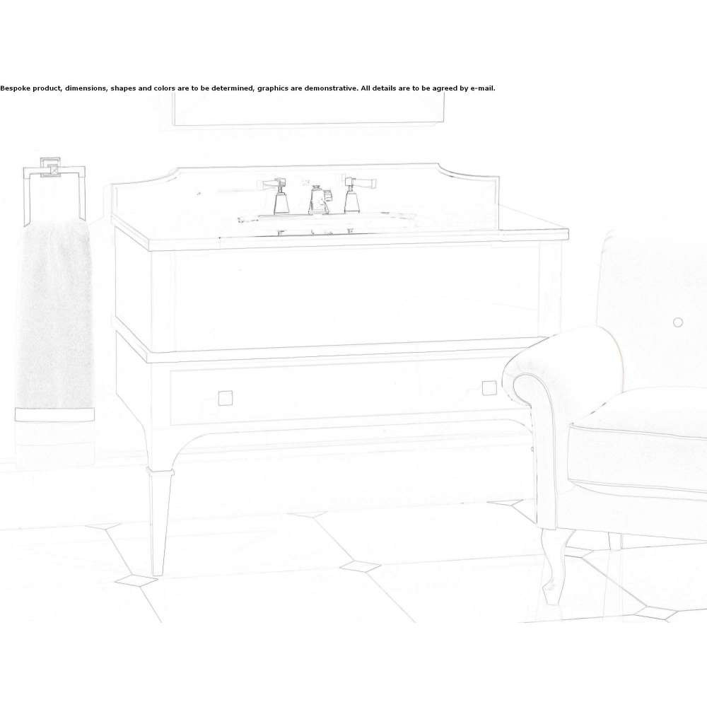Drobne, cenne detale i wysokiej jakości materiały przekształcają tradycyjne komody do sypialni w Suite, szafkę pod umywalkę o wyrafinowanym smaku Deco. Podstawa, która harmonijnie łączy zakrzywione elementy i zaokrąglone krawędzie, wykonana jest z lakierowanego drewna, dostępnego w różnych kolorach. Blat i podwyższony tył są wykonane z białej Carrary, Botticino Fiorito, białego marmuru Sivec lub z absolutnego czarnego granitu. Diamentowe gałki dużej szuflady są wykonane z czarnego kryształu.