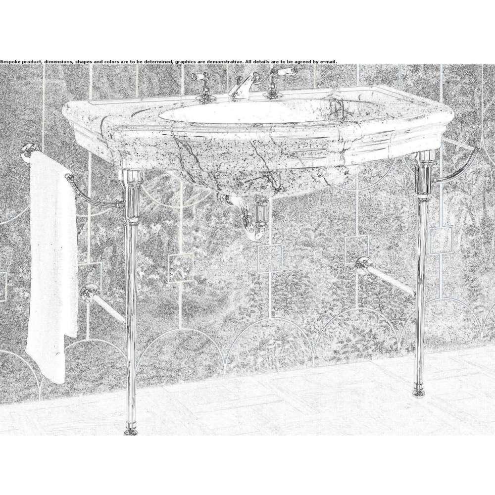 Inspirowana architekturą Art Deco najsłynniejszego drapacza chmur w Nowym Jorku, konsola ta harmonijnie łączy gust lat 30. XX wieku ze współczesnymi akcentami. Konstrukcja nośna z toczonego mosiądzu z wieszakiem na ręczniki podtrzymuje elegancką jednoblokową konsolę z białego lub czarnego marmuru.