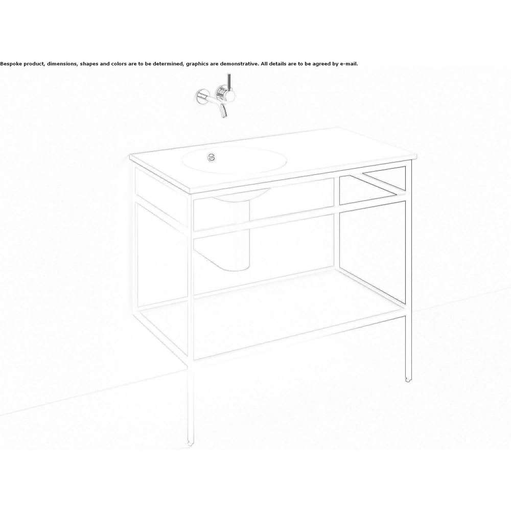 Umywalka stojąca, prostokątna, szer./wys./gł. 1000/900/525 mm, osłona umywalki ze zlewem, okrągła, lewa, Ø 409 mm, głębokość zlewu 159 mm, stal szkliwiona, biała, bez otworu na baterię, z przelew, ramka, stal, malowana proszkowo, kolor czarny matowy, zawiera zestaw mocujący, zestaw przelewowy, szklaną półkę.