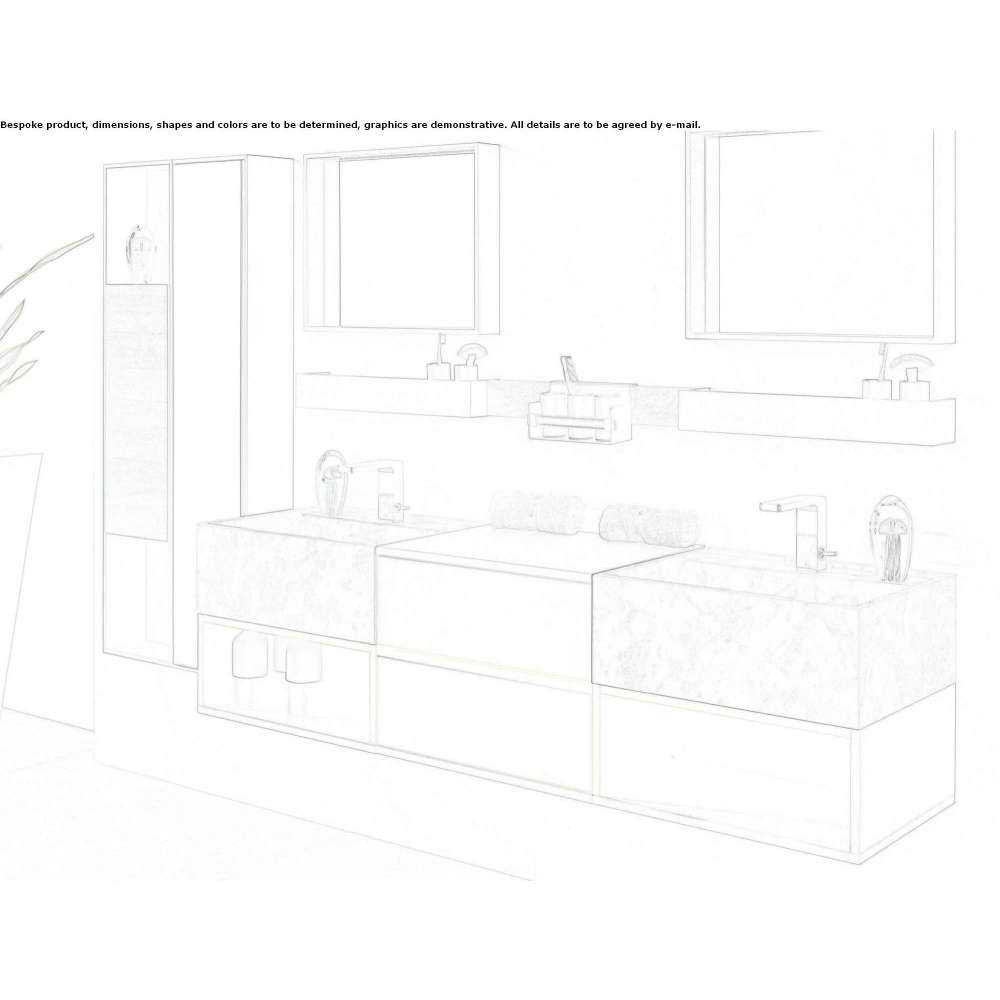 Szuflada posiada zintegrowany uchwyt w kształcie litery J wykonany z przodu, a boki są wykonane w ekskluzywnym kolorze kolorowe wykończenie, stworzone specjalnie dla Gamadecor. Akcesoria i lustro wykonane są z aluminium i mają to samo wykończenie, co boki szuflady.