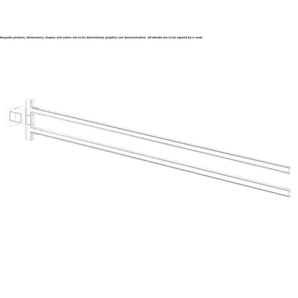 Essentials Cube to obrotowy metalowy wieszak na ręczniki z 2 obrotowymi drążkami i ukrytym mocowaniem. Dostępne w następujących wykończeniach: 40624001 chrom 40624AL1 szczotkowany grafit 40624DC1 super stalLiniowe detale i prostokątne rozety sprawiają, że nasze akcesoria Essentials Cube idealnie uzupełniają styl architektoniczny kilku naszych kolekcji kwadratowych baterii Cosmopolitan . Nasze wytrzymałe, chromowane wykończenie GROHE StarLight® w całej gamie podkreśla precyzyjne wykonanie każdego elementu.