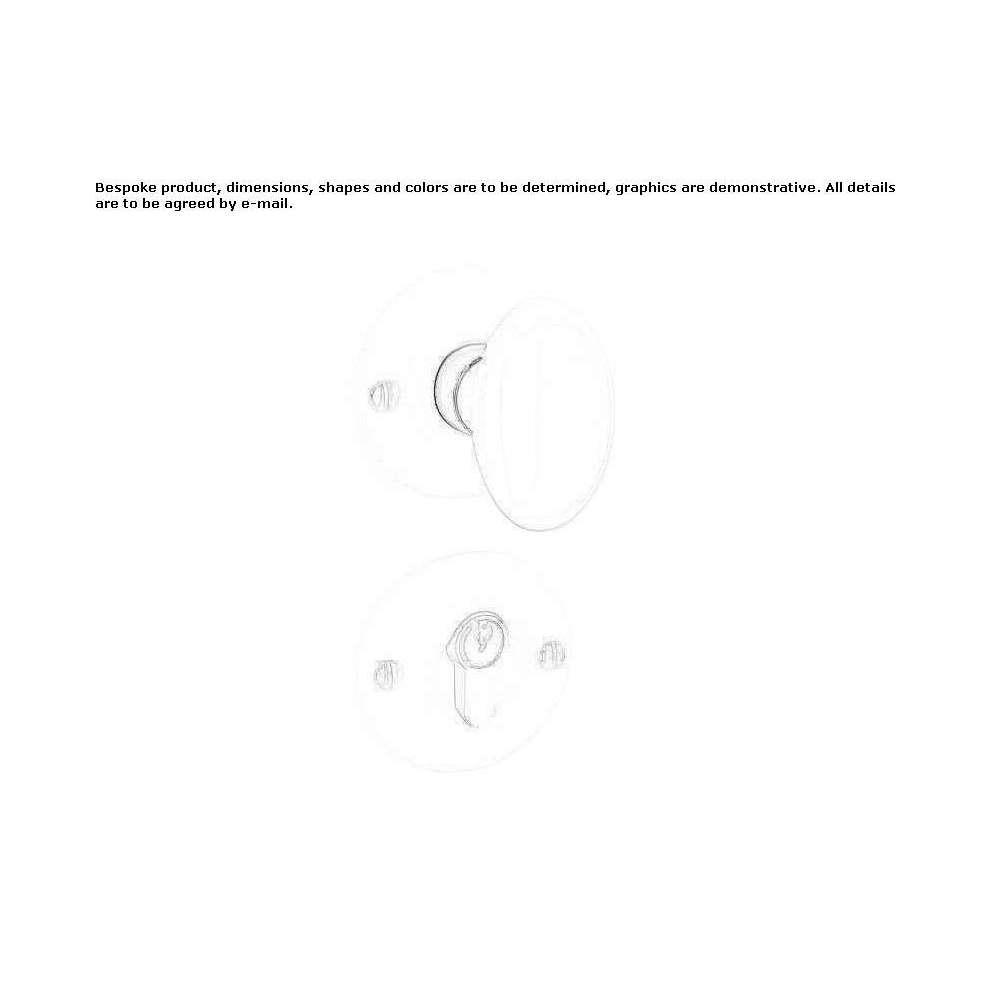 Te solidne i niezawodne klamki do drzwi wykonane są z formowanej porcelany. Porcelanę wciska się do metalowej formy i podgrzewa do temperatury 1400°C; następnie oprawione w mosiężny pierścień. Dwie porcelanowe owalne gałki do drzwi. Okładki i akcesoria: dwie osłony porcelanowe i dwie osłony na klucze, ok. Gałki do drzwi o średnicy 4,5 cm oprawione stalowym kwadratem 8 x 8 mm, długość 9 cm (norma niemiecka).