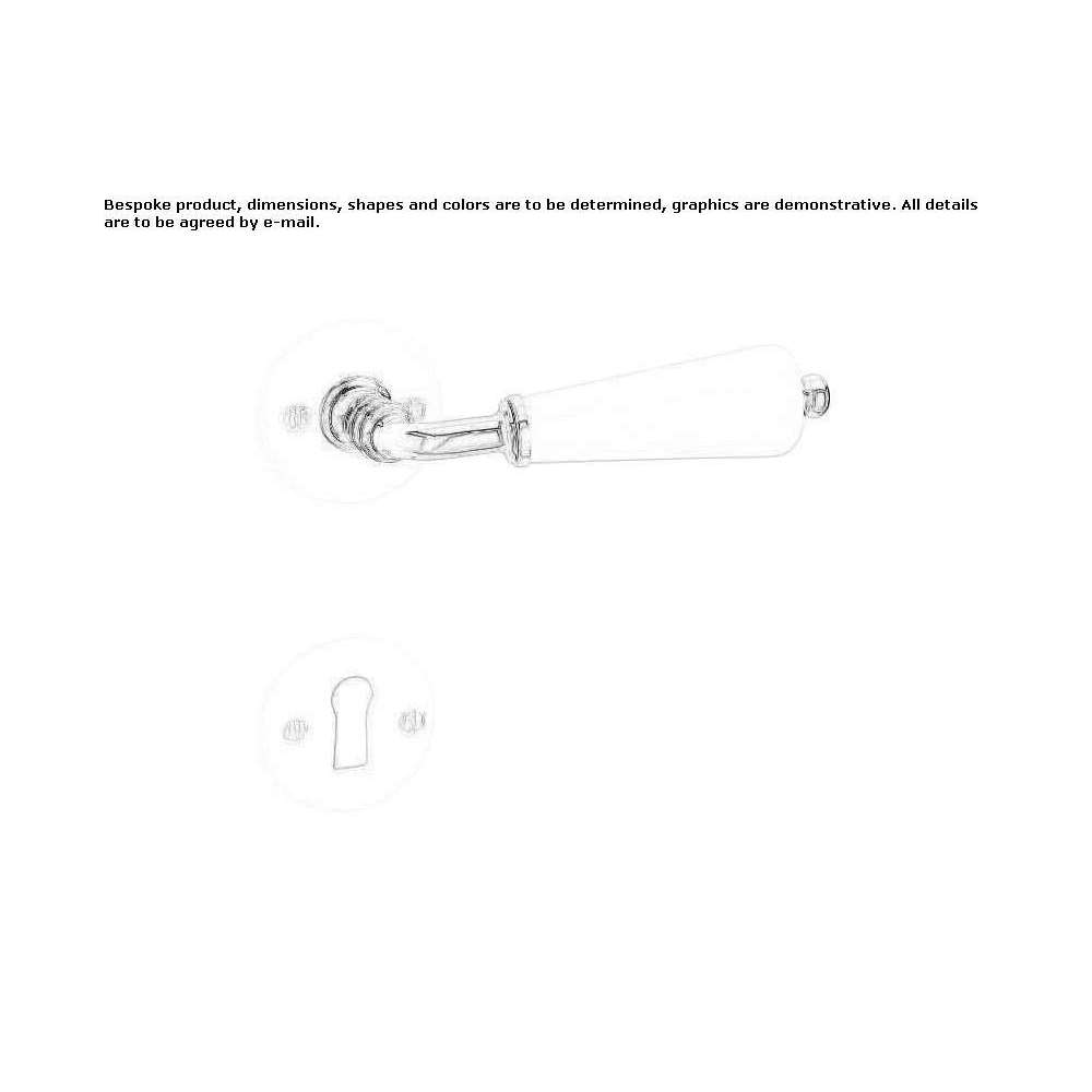 Ta solidna klamka wykonana jest z porcelany. Kątownik z niklowanego mosiądzu sprawia, że jest on niezwykle trwały. Długość rączki ok. Waga 320 g. Osłony i akcesoria takie same jak w przypadku klamki porcelanowej.