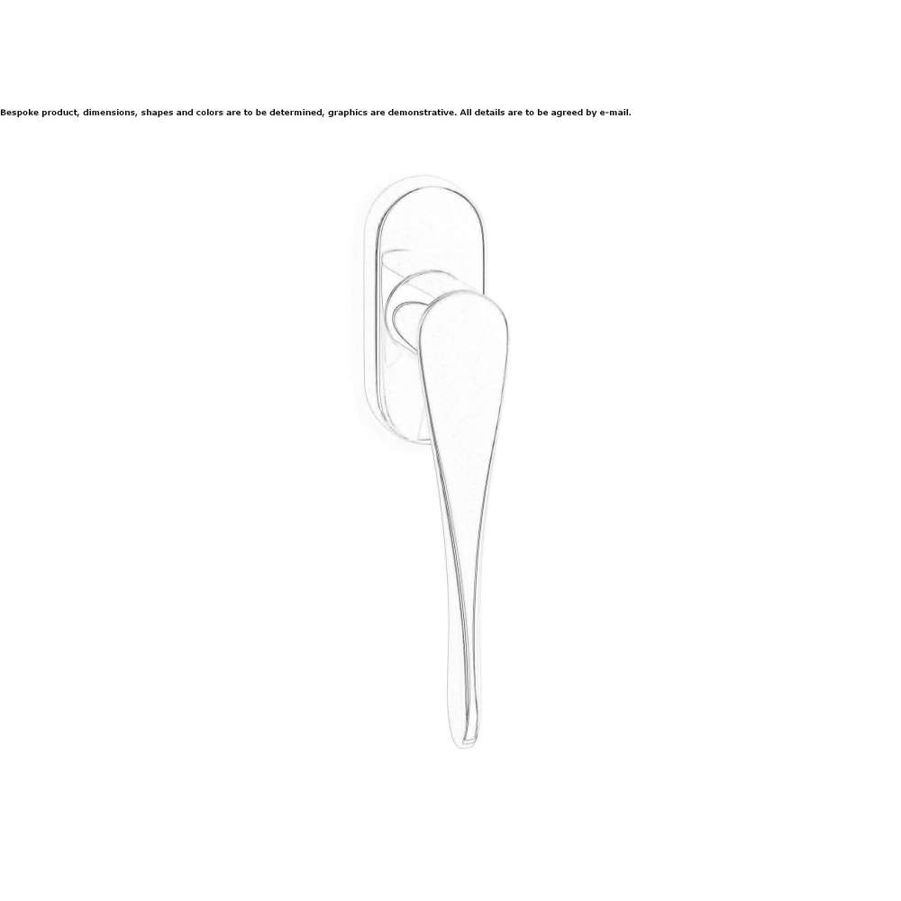 Klamka okienna dostępna jest w wykończeniach: chrom polerowany, chrom satynowany, grafit H-Finish. Inspirowana jest kultowym kształtem rączki sztućców, znajomym przedmiotem, silnie powiązanym z ideą życia. Typowy zwężający się i cienki kształt jest powielany w nieprzerwanej, wizualnej grze, która staje się trójwymiarowa. Umożliwia to maksymalną funkcjonalność przy minimalnej ilości materiału.