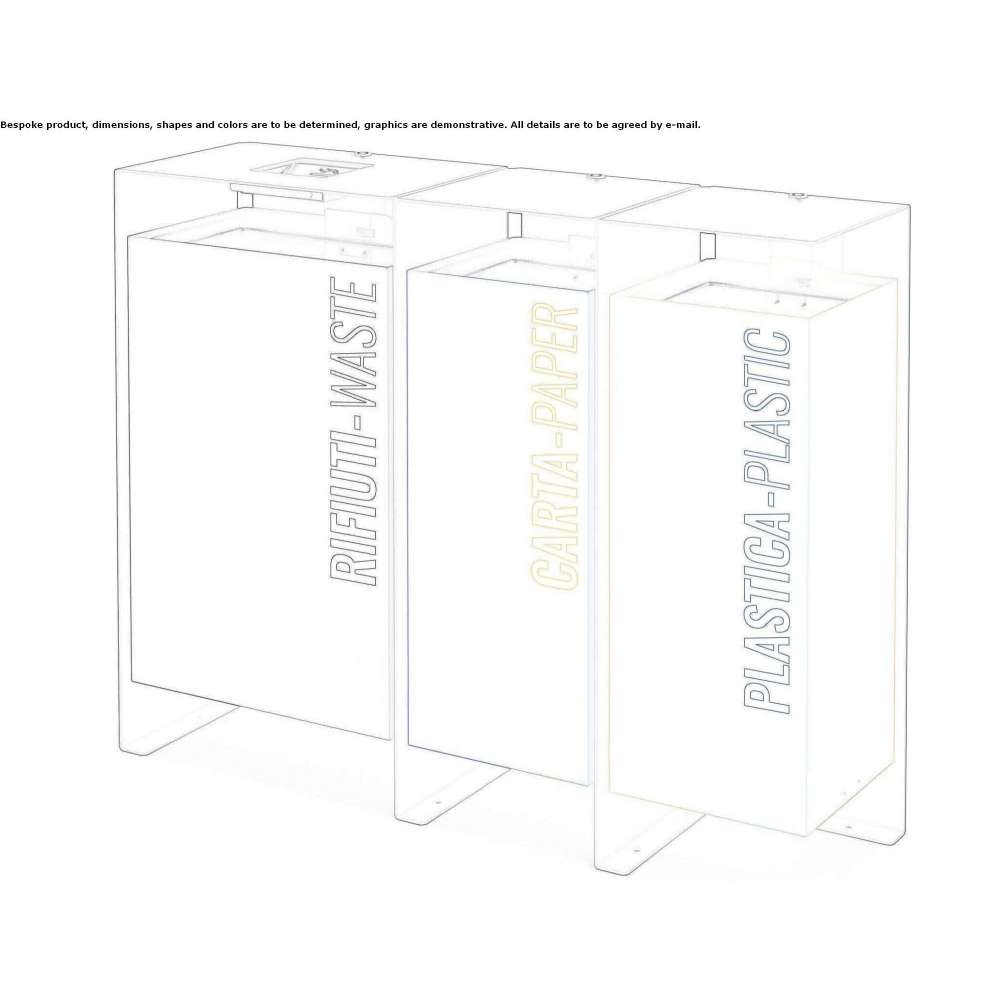 Kosz na śmieci, pojedynczy lub złożony, ze strukturą z ocynkowanej i malowanej proszkowo blachy stalowej oraz pojemnikiem ze stali malowanej proszkowo lub z rozciąganej blachy stalowej malowanej proszkowo, z popielniczką lub bez.
