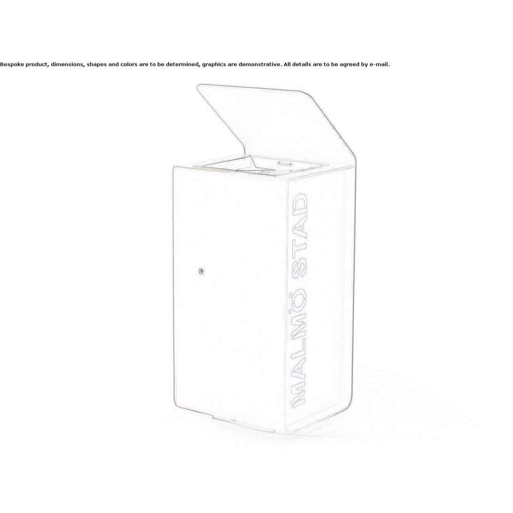YES firmy Metalco to kosz na śmieci wykonany z solidnej konstrukcji z blachy z pokrywą nachyloną pod kątem 45° i dwojgiem drzwi, jednymi stałymi i jednymi otwieranymi, z zatrzaskowym ostrzem ze stali sprężynowej. Drzwi mogą być wykonane z pionowego drewna tekowego. Możliwość personalizacji boków za pomocą cięcia laserowego. Pojemność: 100 l