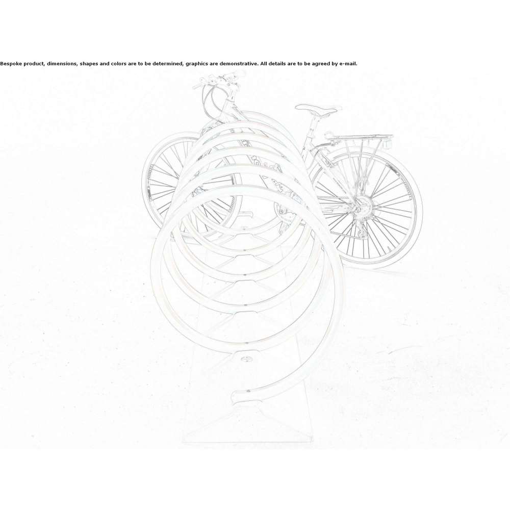 Spyra CL to stojak na rowery z rur stalowych składający się z jednej ciągłej spirali, która spoczywa na ziemi na podstawie z PDM (odtworzone kamienie) lub HPC (beton o wysokiej wydajności).