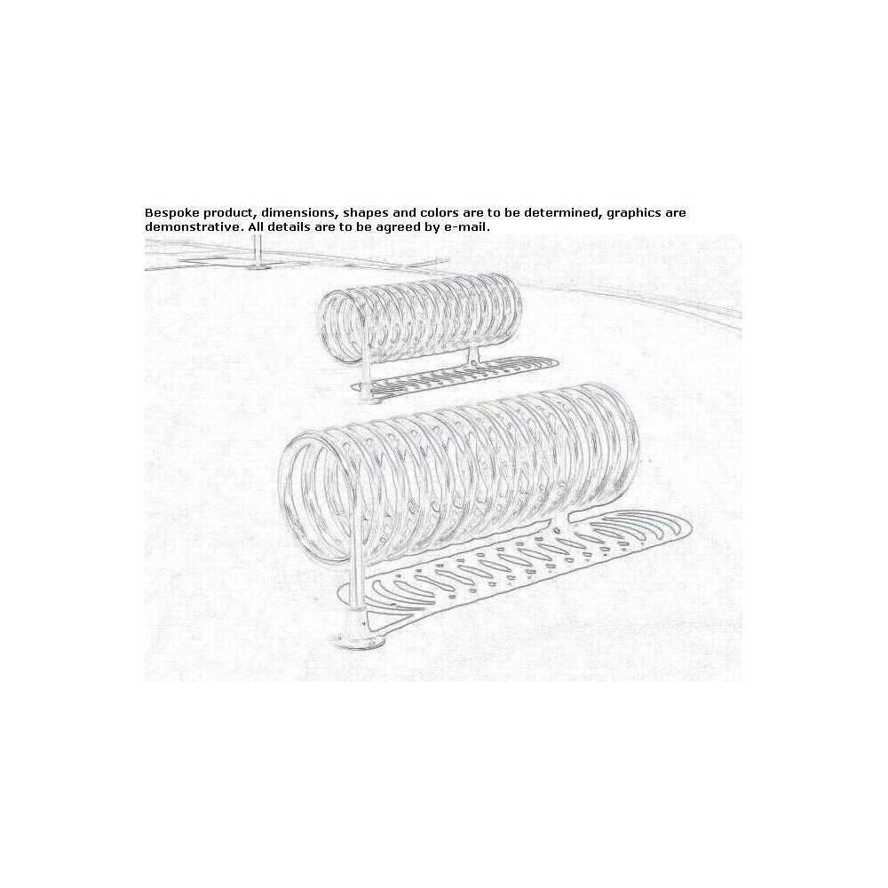 RESET firmy Metalco to stojak na rowery zbudowany ze spiralnej konstrukcji, wykonanej ze stalowej rury, która jest osadzona na podłożu za pomocą dwóch odlanych aluminiowych nóżek.