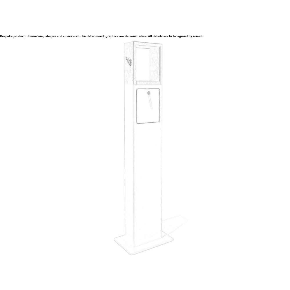 CICA firmy Metalco to prostokątny pojemnik na papierosy wykonany z rury stalowej ocynkowanej ogniowo o wymiarach 200x100x3 mm (zgodnie z odpowiednim standardem UNI), malowany proszkowo poliestrem, wysokość 907 mm z podstawą o wymiarach 300x200 mm i górną o wysokości 230 mm elektropolerowaną Górna końcówka rury ze stali nierdzewnej. W górnej części znajduje się szczelina, która umożliwia poprzez perforowaną płytkę zgaszenie i włożenie papierosów w dolnej części. Wewnątrz znajduje się okrągły pojemnik, który można wyjąć poprzez specjalny panel przedni z trójkątnym zamkiem na klucz. Połączenie dwóch typów rur jest mechaniczne i charakteryzuje się niewidocznymi śrubami. Mocuje się go do podłoża za pomocą specjalnych stalowych kołków rozporowych (brak w zestawie). Wszystkie śruby są ze stali nierdzewnej.