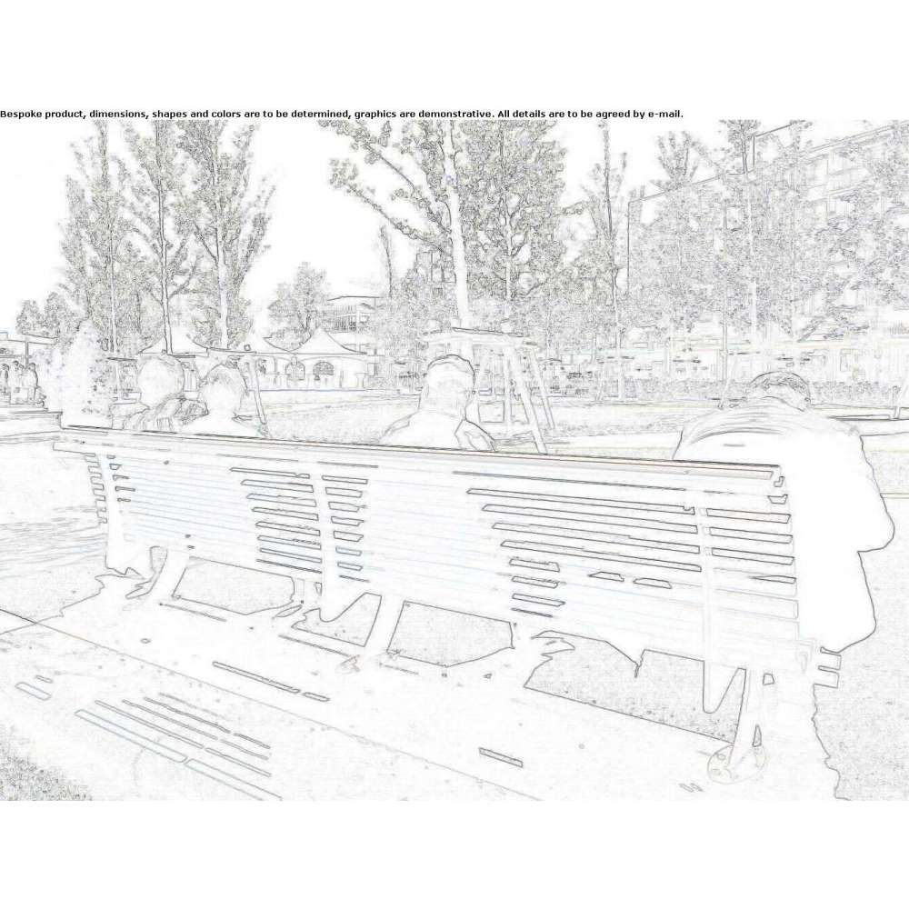 Ławka modułowa utworzona z szeregu listew drewnianych idealnie wpisujących się w linię wyznaczoną przez profilowane wsporniki wykonane z wycinanej laserowo blachy stalowej. Ławka jest oferowana z oparciami i podnóżkami lub bez. Mocowanie odbywa się poprzez płytę podstawy wstępnie nawierconą pod kotwy.