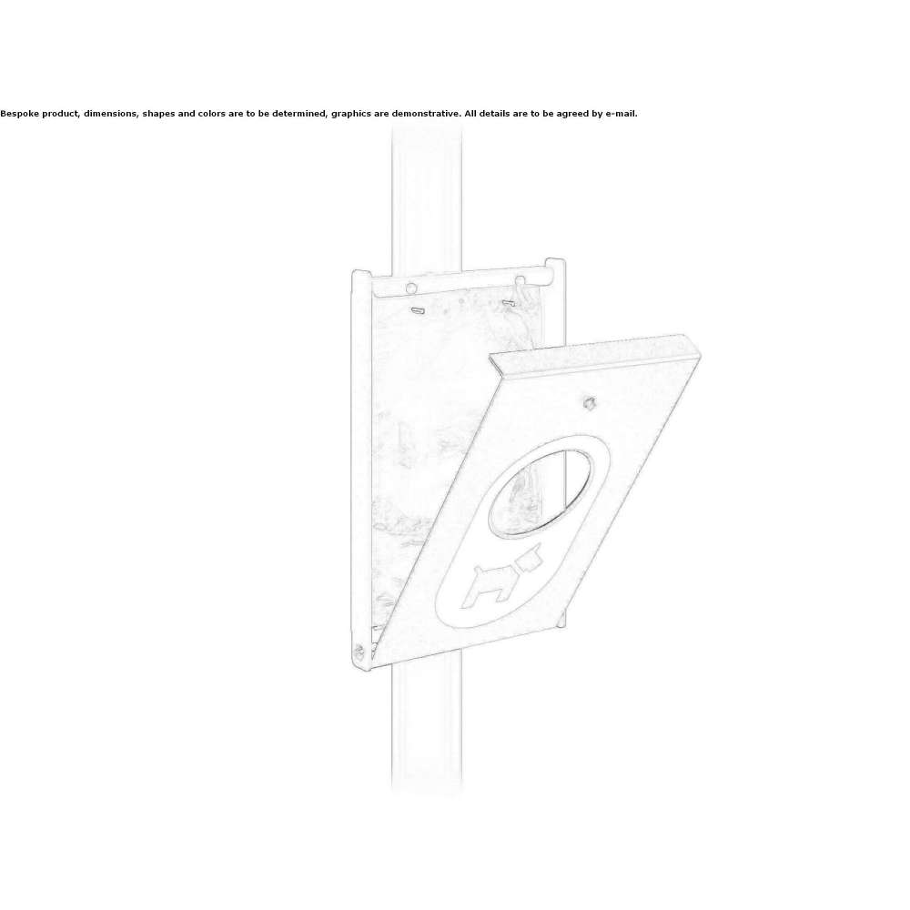 Pouch to dozownik worków na psie odchody składający się z konstrukcji z blachy stalowej i otwieranych drzwiczek z zamkiem zatrzaskowym. Jest wyposażony we wsporniki do mocowania do ściany lub istniejącego słupa.