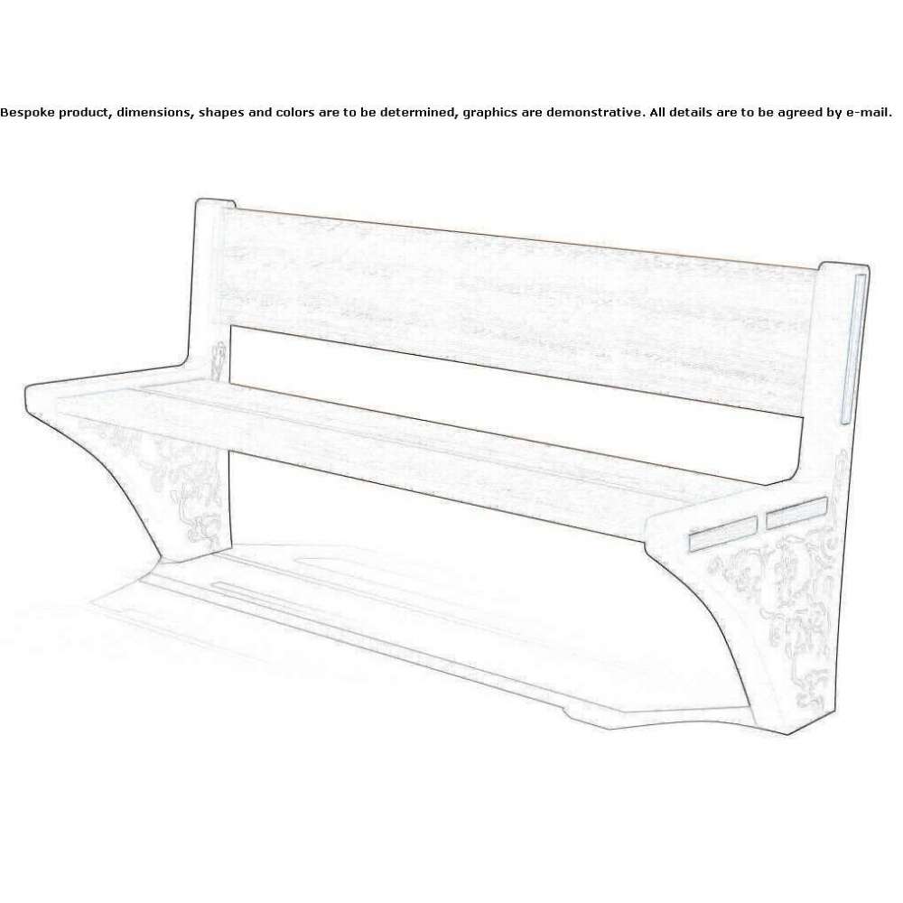 Konstrukcja ławki składa się z 2 mocnych stalowych nóg. Na nogach, charakteryzujących się rzeźbieniami w stylu Déco, zamocowano 2 listwy z drewna egzotycznego kształtujące siedzisko (przekrój: 40x180 mm) i 1 listwę (przekrój: 40x240 mm) kształtującą oparcie. Każda noga wykonana jest ze stali (grubość 60/10), na której zamocowane są profile o grubości 60/10 i 30/10.