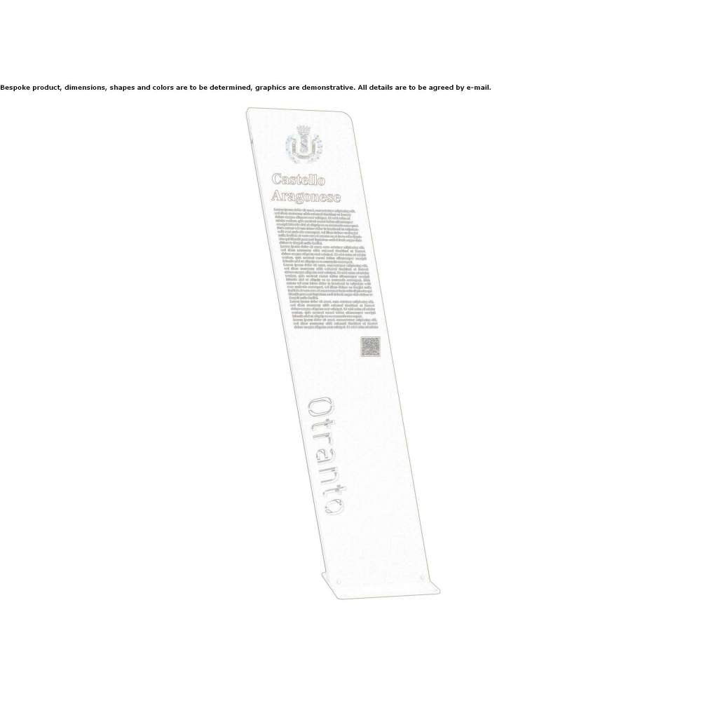 Informacje takie jak mapy, notatki historyczne i obrazy są drukowane bezpośrednio na panelu stalowym i po dodatkowej przezroczystej farbie mogą być uważane za trwałe. Jest wyposażony w płytkę u podstawy z otworami do przymocowania do podłoża za pomocą śrub (nie wchodzą w skład zestawu). Malowany proszkowo żywicą epoksydową. i dostępne w następujących kolorach RAL: brązowy 8002, brązowy 8017, szary 7016 lub corten (inne kolory na zamówienie). Zawiera grawer laserowy pod nazwą instytucji.