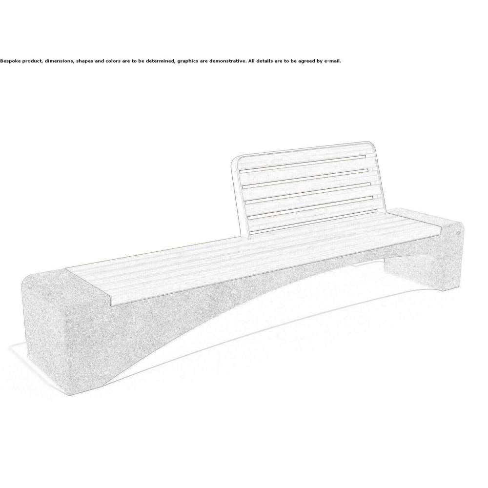 Ławka z oparciem wykonana z wysokowytrzymałego betonu zbrojonego włóknem i kruszywa naturalnego. Struktura kruszywa składa się z naturalnych kamieni marmurowych lub granitowych, które można łączyć w różnych kolorach. Powierzchnia jest całkowicie wypolerowana. Część wypoczynkowa wykonana jest z egzotycznego, twardego drewna - bambusa, a obecność oparcia zapewnia maksymalny komfort. Certyfikowane drewno i beton zabezpieczone są specjalną powłoką ochronną, dzięki czemu produkt jest jeszcze bardziej odporny na agresywne warunki atmosferyczne. Połączenie designu tych dwóch materiałów to stylowe rozwiązanie dla każdego miasta.