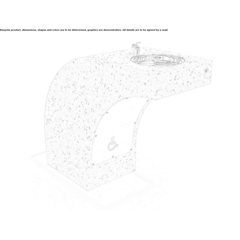 Model z serii fontann betonowych Encho Enchev-ETE zaprojektowany, aby ułatwić osobom niepełnosprawnym codzienne życie. Posiada nowoczesny i funkcjonalny design. Specjalnie zaprojektowane zagięcie zapewnia łatwy dostęp osobom poruszającym się na wózku inwalidzkim. Fontanna do picia wykonana jest z wysokowartościowego betonu i kruszywa naturalnego. Beton jest zbrojony i wzmacniany włóknami. Kruszywo produkowane jest z naturalnych kamieni marmurowych lub granitowych o określonej wielkości, w różnych zestawieniach kolorystycznych. Wszystkie powierzchnie są dokładnie wypolerowane, a następnie pokryte specjalną powłoką ochronną, która czyni produkt jeszcze bardziej odpornym na agresywne warunki atmosferyczne i ogranicza osadzanie się brudu. Betonowa fontanna do picia jest wyposażona w kołki do zakotwienia w podłodze. Metalowe elementy konstrukcji wykonano ze stali nierdzewnej. Bateria do picia posiada przycisk ograniczający wypływ wody. Obudowa została zaprojektowana tak, aby zapewnić najłatwiejszy dostęp w celu serwisowania i konserwacji. Zestaw fontanny do picia zawiera węże do wody odpływowej i czystej oraz miękkie przyłącza. Eleganckie rozwiązanie zewnętrzne do wyposażenia parków, placów, ogrodów, placów zabaw, szkół i innych przestrzeni publicznych.