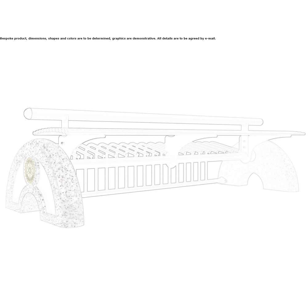 Arco to wielofunkcyjny mebel miejski z ławką i stojakiem na rowery, z krętym i ergonomicznym siedziskiem, na krótkie chwile odpoczynku, wykonany z żelaznych prętów, spawanych na blachach kształtowanych laserowo. Górna rura, uniesiona nad siedzisko, pełni funkcję oddzielnej, ale także małej podpórki, mocowanej do ławki za pomocą dwóch elementów nośnych wykonanych z blachy. Zamiast tego rura znajdująca się na dole, oprócz swojej funkcji konstrukcyjnej, służy jako ogranicznik podczas wkładania koła do zębatki.