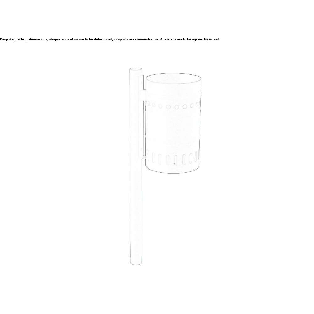 Pojemnik ze stali ocynkowanej Ø mm 300, h mm 500, denerwujący, przyjemny design z dwoma rzędami okrągłych otworów. Dostarczane ze słupkiem Ø mm 60, h cm 120 z czarną nakładką z PCV. Dostępne: ocynkowane lub ocynkowane i malowane. Opcjonalnie: pierścień do mocowania worka. Pojemność: litry 25/30.