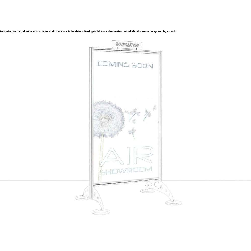Stojak ekspozycyjny Out-Totem-A został zaprojektowany z myślą o lokalizacjach zewnętrznych dzięki solidnym i odpowiednio dobranym podstawom balastowym, które zapobiegają przewróceniu się. Do systemu paneli wystawienniczych z PVC, poliwęglanu lub materiału kompozytowego pokrytego folią Al/PE/Al, w żądanym miejscu można przymocować kieszenie na broszury z przezroczystego, odpornego na wstrząsy Plexiglas®. Dwustronna samonośna konstrukcja z profilem o przekroju trójkątnym została zaprojektowana z aluminium z metalowymi wspornikami pomalowanymi na wytłoczony metaliczny szary kolor.