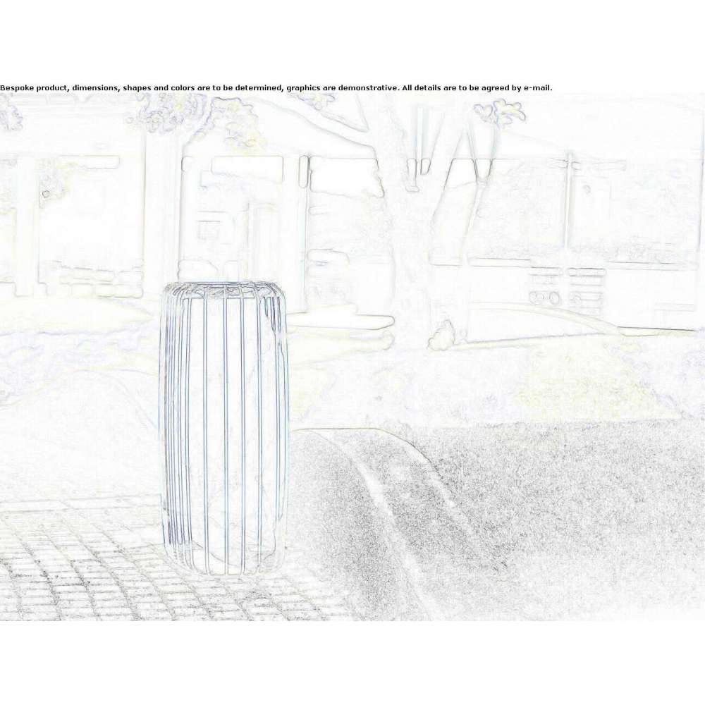 Wykonany z ocynkowanej proszkowo- powlekane stalowe naboje, wyposażone w elastyczną krawędź u góry do mocowania plastikowych worków na śmieci lub wewnętrzną wyściółkę z przemysłowego tworzywa sztucznego. Kotwy do podłoża.