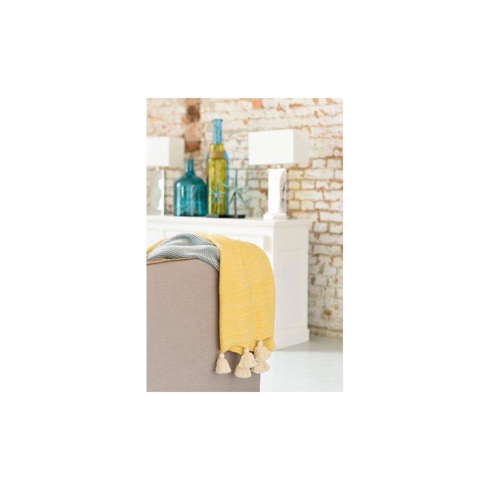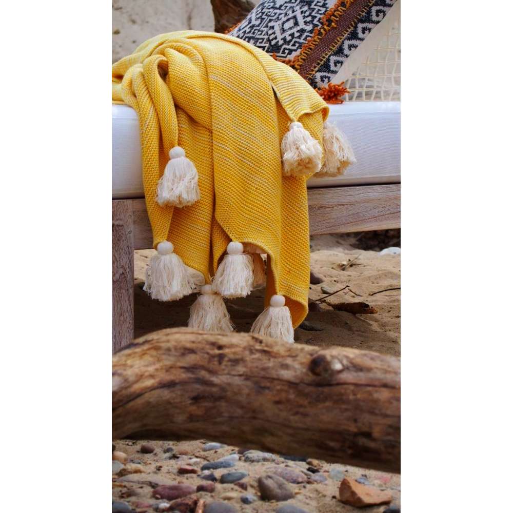 Wyjątkową cechą tego koca są urocze pompony zdobiące jego brzegi, dodając do swojego projektu odrobinę zabawy i zabawy. Żółty kolor koca jest nie tylko atrakcyjny wizualnie, ale także dodaje blasku każdemu pomieszczeniu, w którym jest umieszczony. Niezależnie od tego, czy będzie owinięty nad sofą, czy rozłożony na łóżku, ten koc z pewnością poprawi estetykę Twojej przestrzeni życiowej.