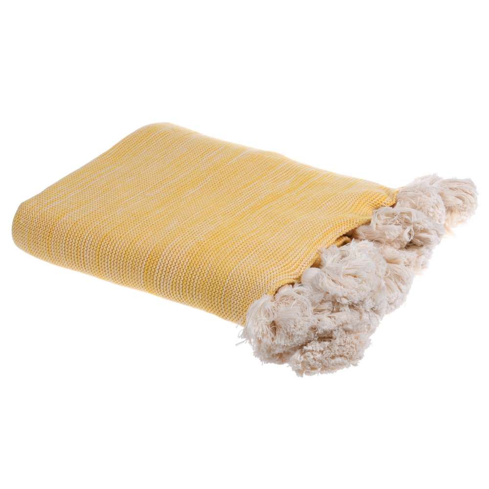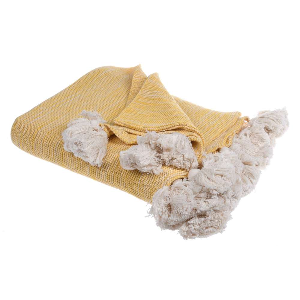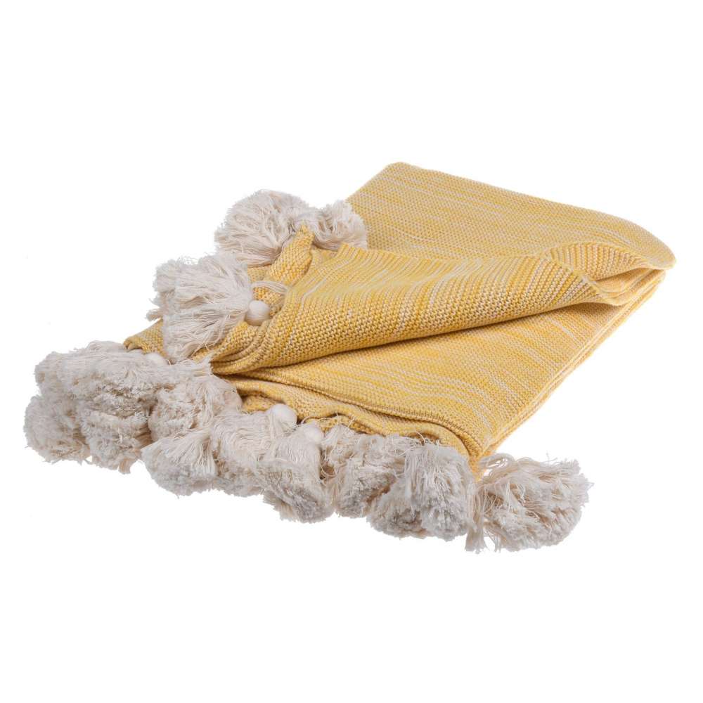 Przedstawiamy idealny dodatek do wystroju Twojego domu - Przytulny Kocyk z Pomponami w żywym żółtym odcieniu. Kocyk o wymiarach 125 x 180 cm jest nie tylko stylowy, ale także niezwykle wygodny, zapewniając ciepło i przytulność podczas chłodnych wieczorów.