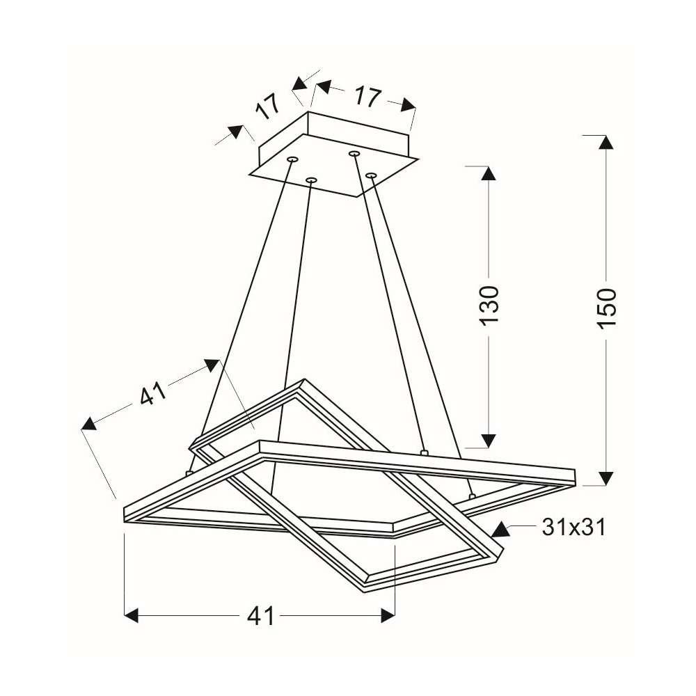 Łatwa w montażu i konserwacji, ta kwadratowa lampa wisząca jest nie tylko funkcjonalna, ale także elementem dekoracyjnym, który dodaje charakteru i uroku Twojej przestrzeni. Podnieś wystrój swojego wnętrza dzięki tej wyjątkowej oprawie oświetleniowej, która łączy styl i funkcjonalność w jednym eleganckim opakowaniu.